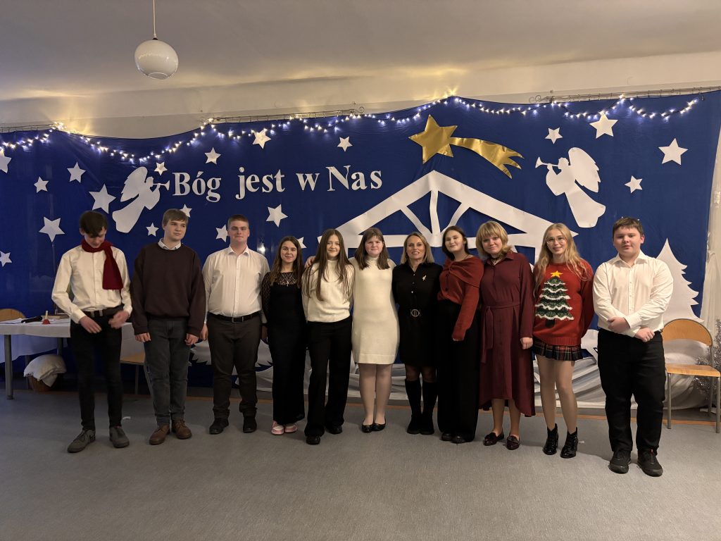 Spotkanie rozpoczęło się od serdecznych życzeń bożonarodzeniowych, które skierował do całej społeczności szkolnej ks. dyrektor Kazimierz Dąbrowski. Następnie uczniowie zaprezentowali jasełka przygotowane pod kierunkiem pani Ewy Krawczyk, wprowadzając wszystkich w świąteczny nastrój. Kolejnym punktem było wspólne dzielenie się opłatkiem oraz wieczerza wigilijna. Uroczystość zakończyło wspólne kolędowanie przy akompaniamencie orkiestry dętej, przygotowanej przez pana Dariusza Kossakowskiego, co nadało wydarzeniu radosny i podniosły charakter.